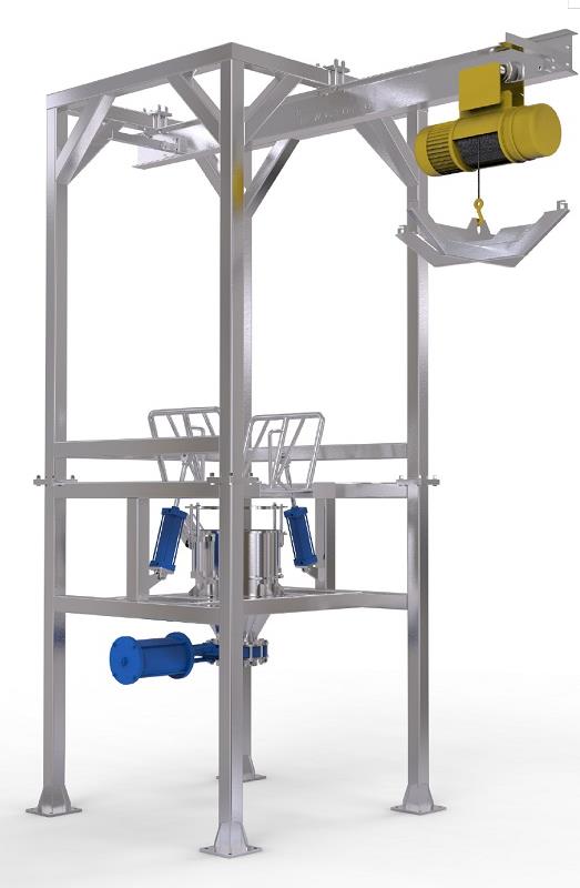 起重設備:自身攜的帶起重設備將大袋(噸袋)吊裝到卸料機的機架上,不需用外界的幫助。