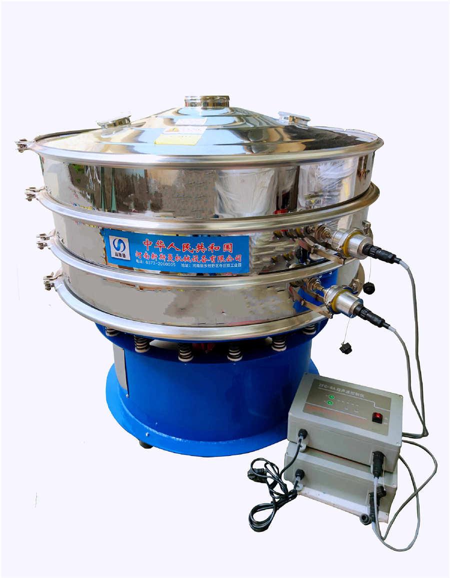 超聲波振動(dòng)篩是將220V、50Hz或110V、60Hz電能轉(zhuǎn)化為36KHz的高頻電能,輸入超聲換能器,將其變成36KHz機(jī)械振動(dòng),產(chǎn)生的功率超聲波使篩網(wǎng)作高頻振動(dòng)。篩網(wǎng)上的物料在作低頻旋振運(yùn)動(dòng)的同時(shí),疊加上超聲振動(dòng),既可防止網(wǎng)孔堵塞,又可使篩分機(jī)提高產(chǎn)量和質(zhì)量,從而達(dá)到快速篩分和清網(wǎng)的目的,使超微細(xì)粉篩分成為易事。該系統(tǒng)在傳統(tǒng)的振動(dòng)篩基礎(chǔ)上在篩網(wǎng)上引入一個(gè)低振幅、高頻率的超聲振動(dòng)波(機(jī)械波),以改變超微細(xì)分體的篩分性能。特別適合高附加值精細(xì)分體的用戶使用。