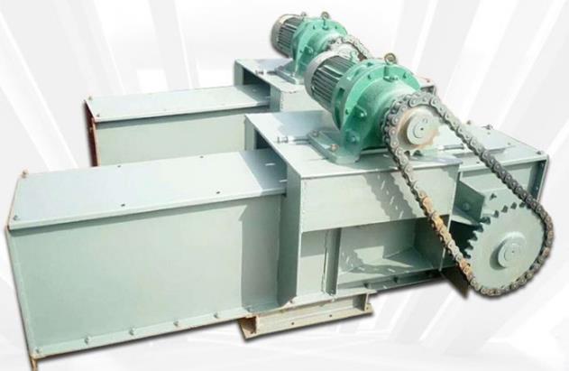 埋刮板輸送機一種在封閉的矩形斷面的殼體內,借助于運動著的刮板鏈條連續輸送散狀物科的運輸設備。在水平輸送時,物料受到刮板鏈條在運動方向的壓力,及物料自身重量的作用在物料間產生了內摩擦力。這種摩擦力了料層之間的穩定狀態,并足以克服物科在機槽內的移動而產生的外摩擦阻力,使物料形成整體科流而被輸送。