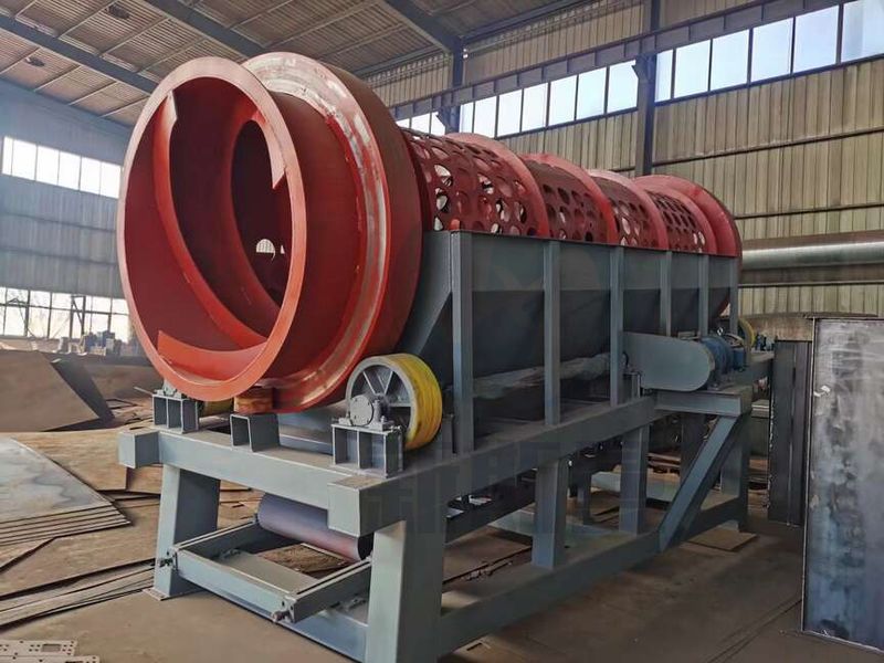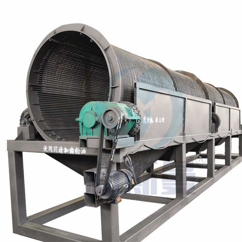 滾筒篩也叫滾筒篩沙機(jī),滾筒篩分機(jī),它的主體部分是篩分筒,有若干個(gè)圓型狀沙王組成,過變速減速系統(tǒng)使篩分筒在一定轉(zhuǎn)速下旋轉(zhuǎn),物料自上而下通過篩分筒得到分離,細(xì)料從篩分筒前端下部排出,粗料從篩分筒下端尾部排出,以此來完成物料的分級(jí)篩選。