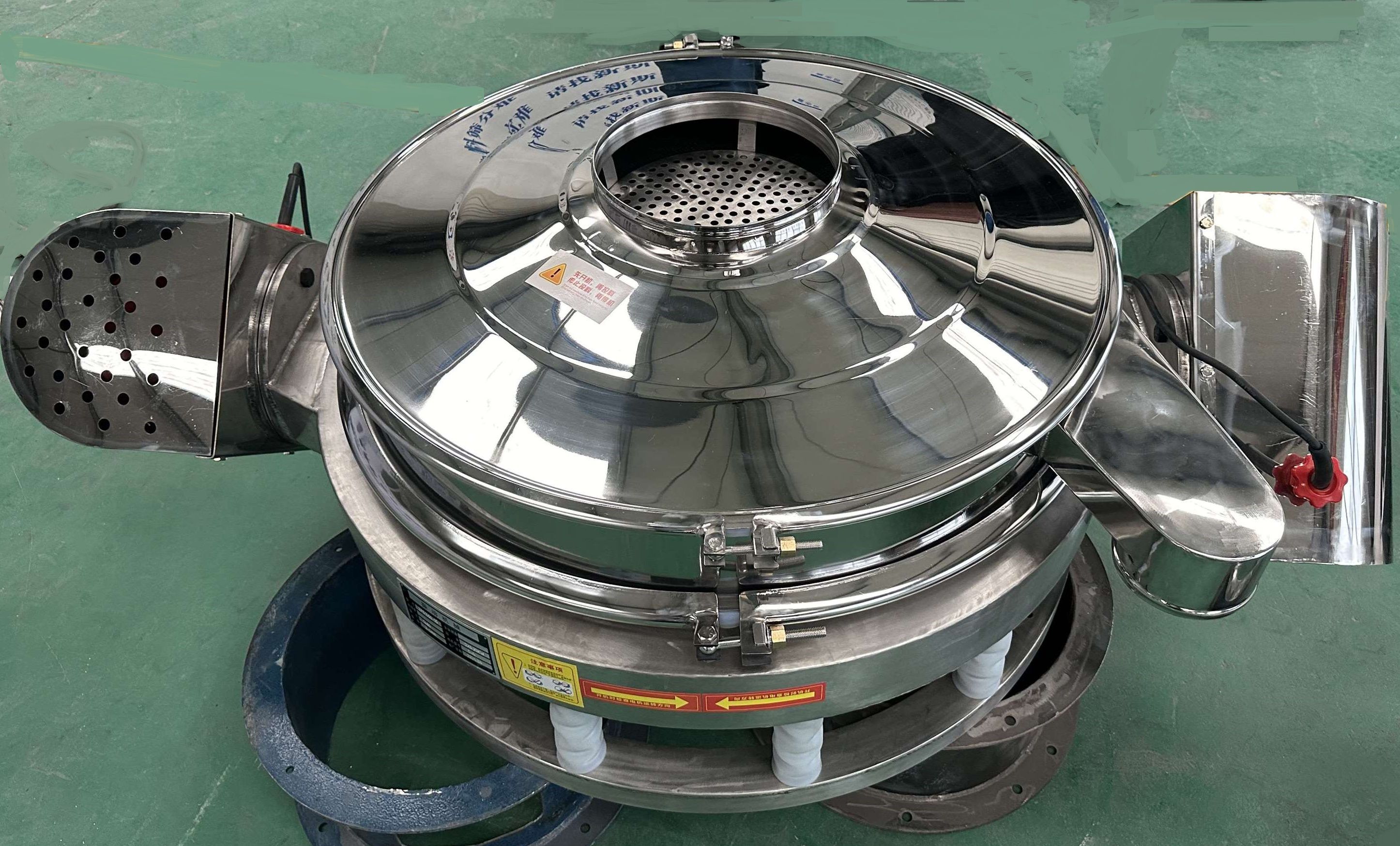 直排篩是為部分行業特殊設計的一種多用途新型篩分機,該機振動電機有單電機和雙電 機兩種動力布置方式,物料的運行軌跡有多種調節形式,設備適應性顯著增加;物料直接排放,有大的處理量。根據不同的使用條件,可以對直排式振動篩作針對性 的改型,以達到減輕員工勞動強度等問題,提高生產效率。直排式振動篩多用于面粉、淀粉、洗衣粉、金屬粉、添加劑、化工、非礦等行業的顆粒、粉末的粗略篩 粉、精密篩粉,處理量大、易于生產線的結合。可根據使用者要求設計制造,如將進料口加高、出料口加裝蝶閥等。