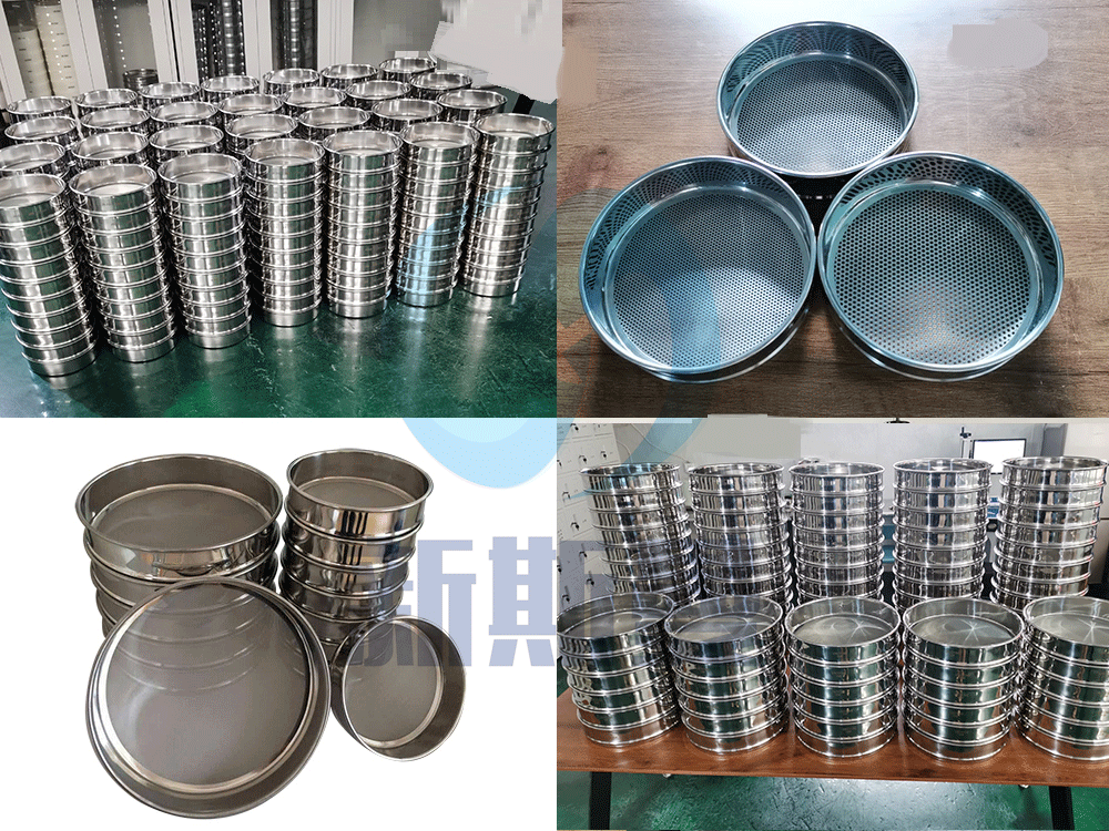 其網孔基本尺寸為金屬絲編織網試驗篩2.36mm-0.020mm篩網材質為黃銅、不銹鋼。金屬沖孔板試驗篩3-20MM篩網材質為不銹鋼。