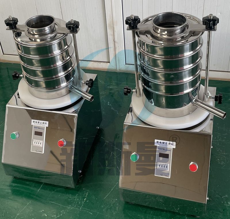 藥廠研究部用檢測篩,國標藥典篩,不銹鋼標準1-9號篩子主要是以YZUL立式振動電機作為整機振動源,通過振動電機帶動上部振動盤振動,